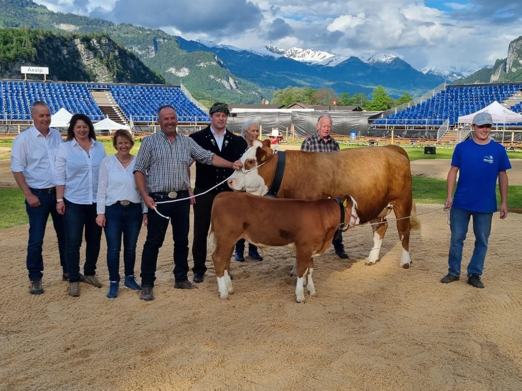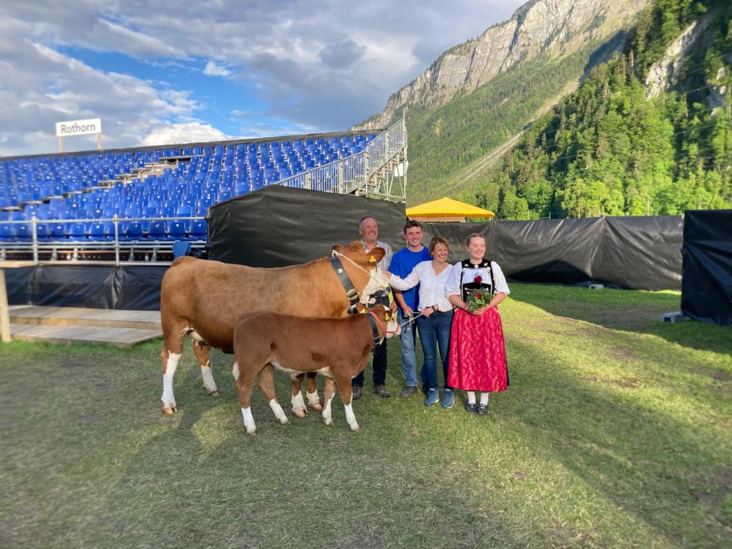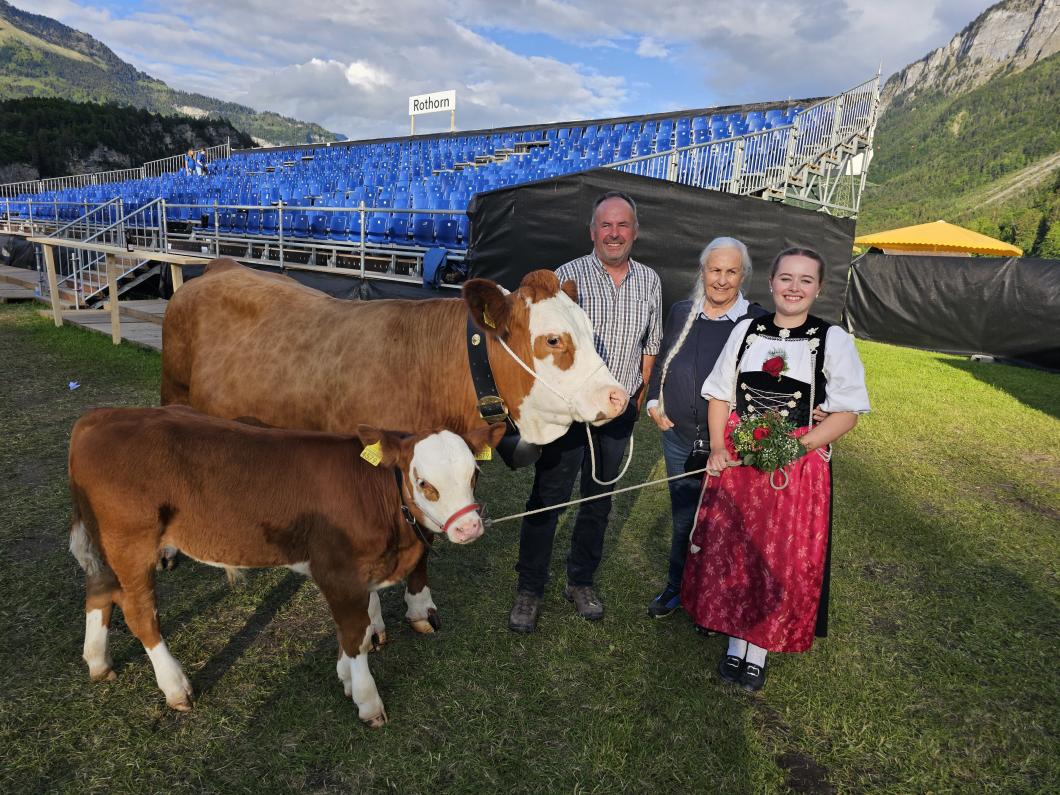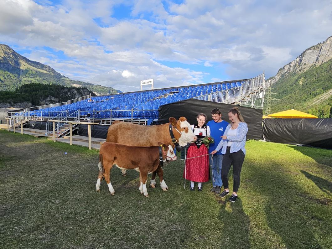 Am Oberländischen Schwingfest in Brienz, 25. und 26. Mai 2024, wurde erstmals eine Mutterkuh mit Kalb als Lebendpreis präsentiert. Unser Rind Red River und ihr Kalb «Balis Hilten» wurden als 2. Lebendpreis vorgeführt. Kämpf Bernhard aus Sigriswil BO hat mit dem zweiten Rang unseren Lebendpreis gewonnen - herzliche Gratulation!